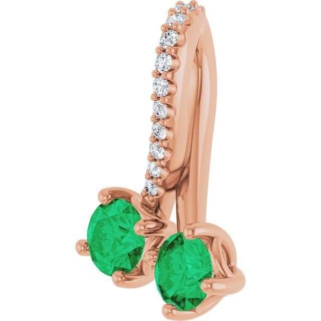 14k Rose Lab-grown Emerald & .05 Ctw Natural Diamond Pendant