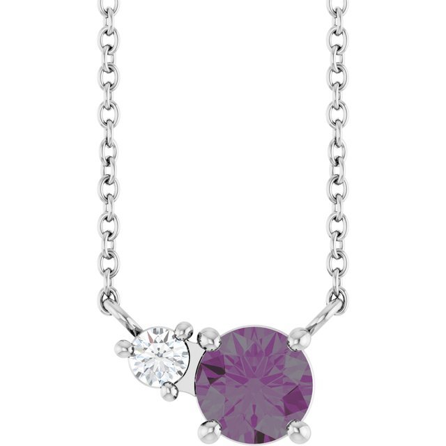 14k White Lab-grown Alexandrite & .06 Ct Natural Diamond 18′ Necklace