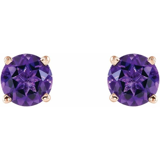 14k Rose 5 Mm Natural Amethyst Earrings