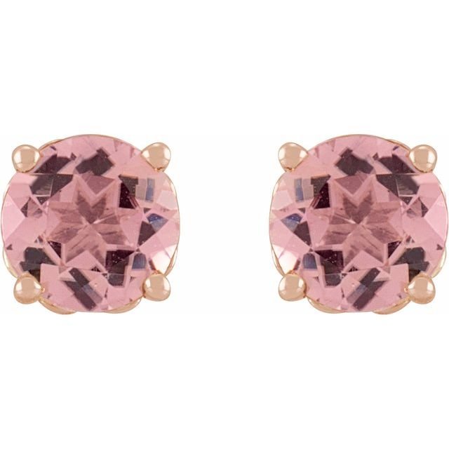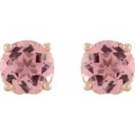14k Rose 6 Mm Natural Pink Tourmaline Earrings