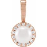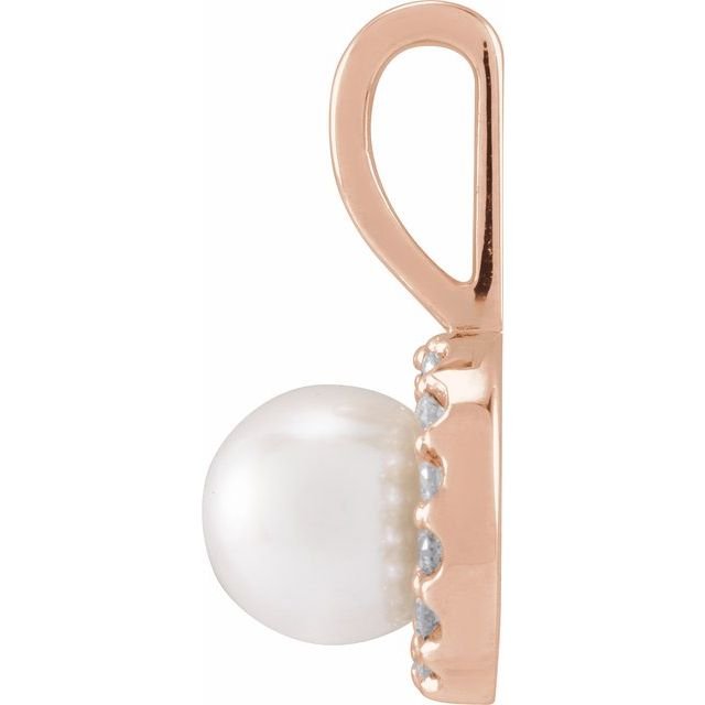 14k Rose Cultured White Akoya Pearl & 1/10 Ctw Natural Diamond Pendant