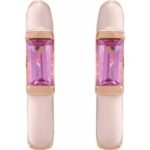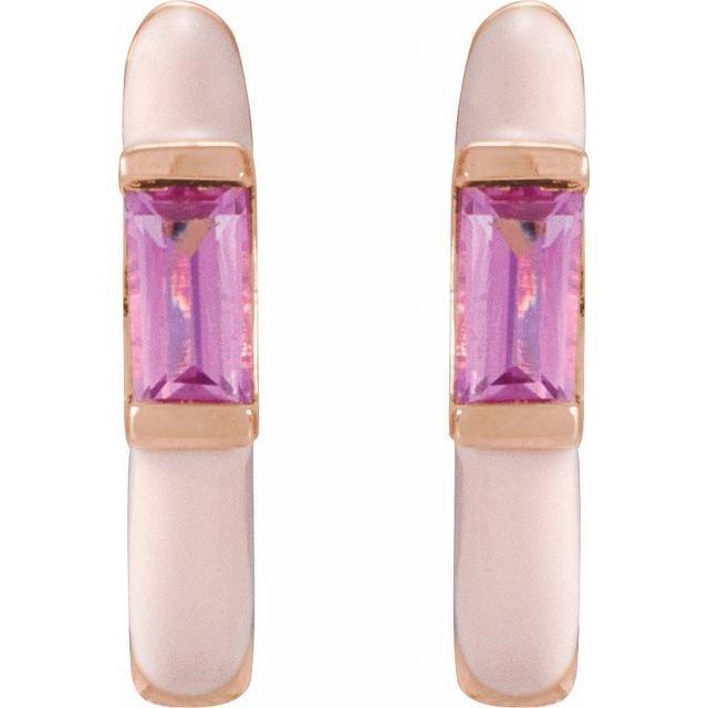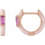 14k Rose Natural Pink Tourmaline & Pink Enamel Hinged 11 Mm Hoop Earrings