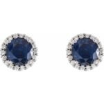14k White 3.5 Mm Natural Blue Sapphire & 1/10 Ctw Natural Diamond Earrings