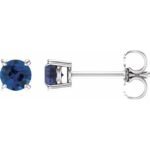 14k White 4 Mm Natural Blue Sapphire Earrings