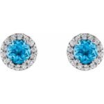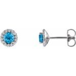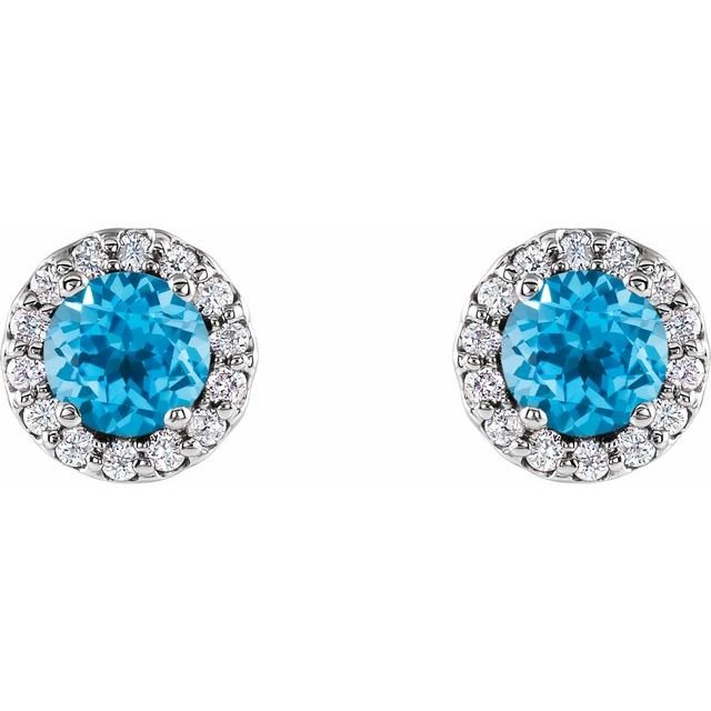 14k White 4 Mm Natural Swiss Blue Topaz & 1/10 Ctw Natural Diamond Earrings