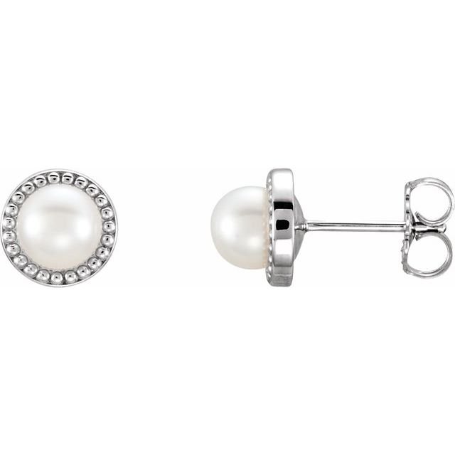 14k White 5.5-6 Mm Cultured White Freshwater Pearl Earrings