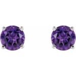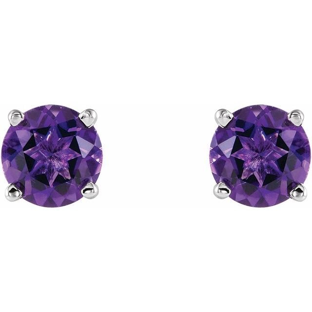 14k White 5 Mm Natural Amethyst Earrings
