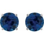 14k White 5 Mm Natural Blue Sapphire Earrings