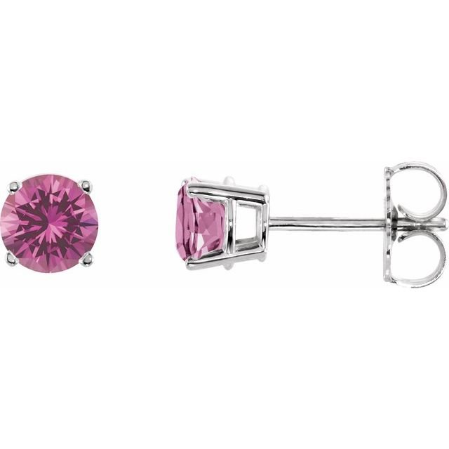 14k White 5 Mm Natural Pink Tourmaline Earrings