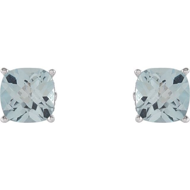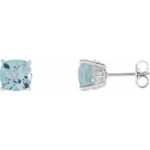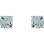 14k White 6×6 Mm Cushion Natural Sky Blue Topaz Earrings