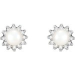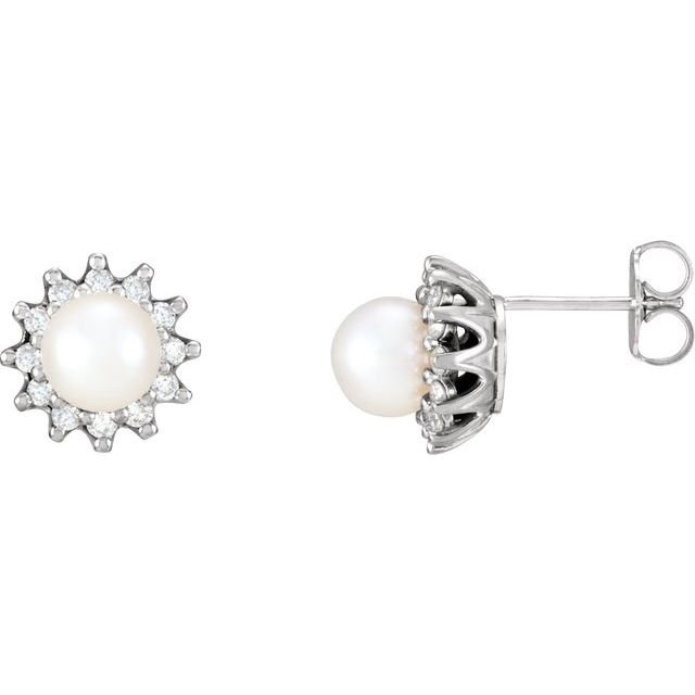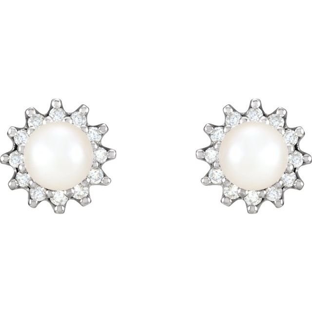 14k White Cultured White Akoya Pearl & 1/3 Ctw Natural Diamond Earrings