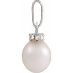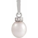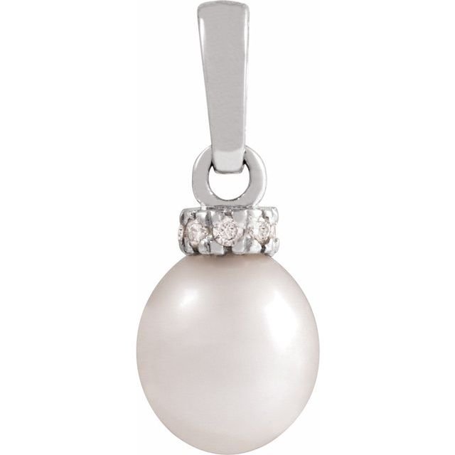 14k White Cultured White Freshwater Pearl & .08 Ctw Natural Diamond Pendant