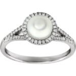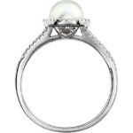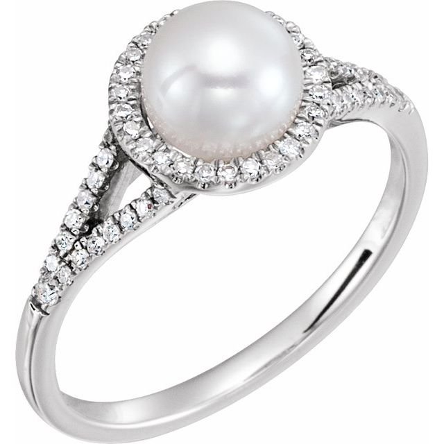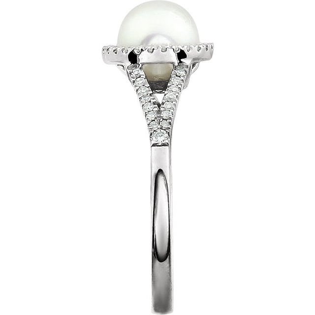 14k White Cultured White Freshwater Pearl & 1/6 Ctw Natural Diamond Ring