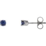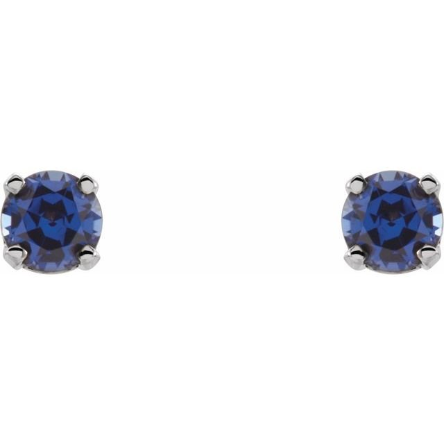 14k White Lab-grown Blue Sapphire Youth Earrings