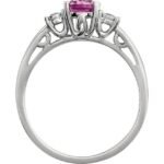 14k White Lab-grown Pink Sapphire & .04 Ctw Natural Diamond Ring