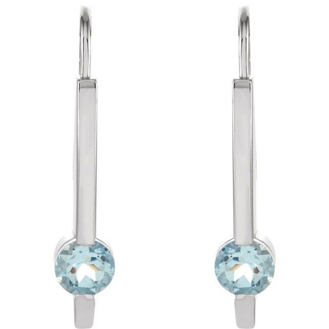 14k White Natural Aquamarine Bar Earrings