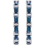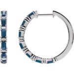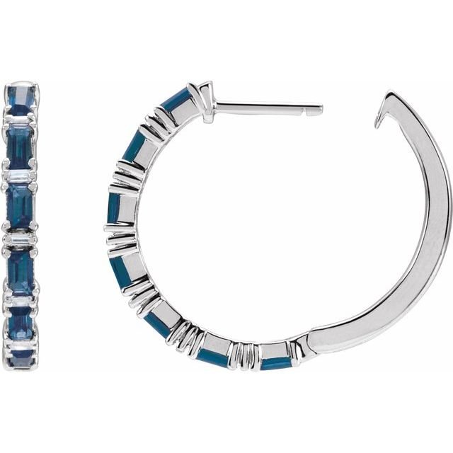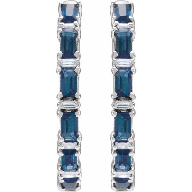 14k White Natural Blue Sapphire & 1 1/4 Ctw Natural Diamond Hoop Earrings