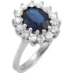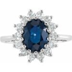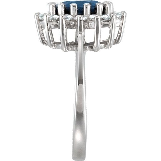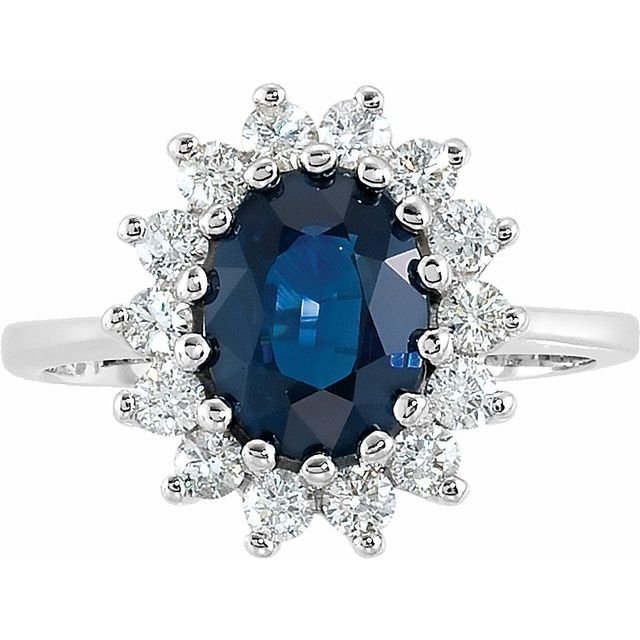 14k White Natural Blue Sapphire & 1/2 Ctw Natural Diamond Halo-style Ring