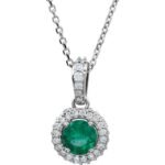 14k White Natural Emerald & 1/5 Ctw Natural Diamond 18′ Necklace