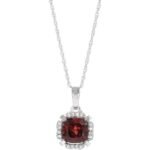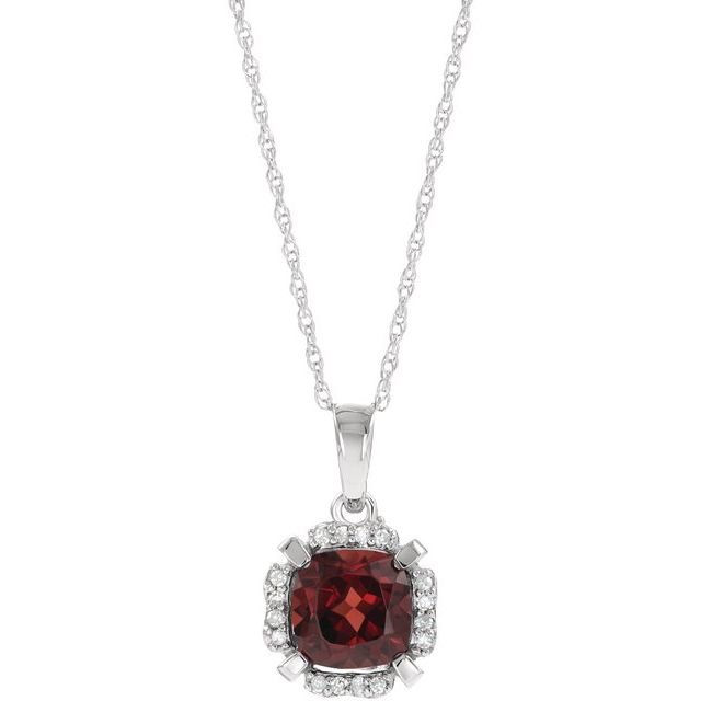14k White Natural Mozambique Garnet & .04 Ctw Natural Diamond 18′ Necklace