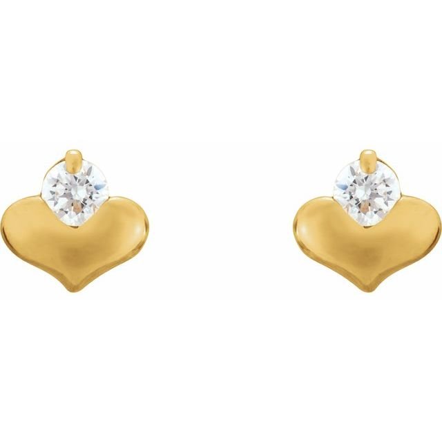 14k Yellow 2.25 Mm Imitation White Cubic Zirconia Heart Earrings
