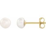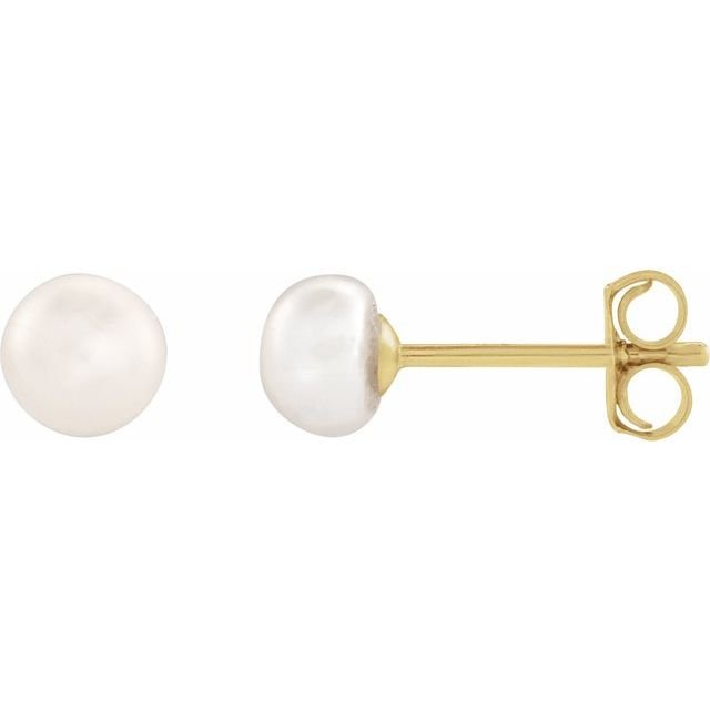 14k Yellow 4-4.5 Mm Cultured White Freshwater Button Pearl Earrings