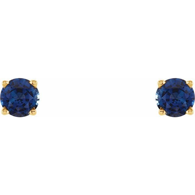 14k Yellow 4 Mm Natural Blue Sapphire Earrings