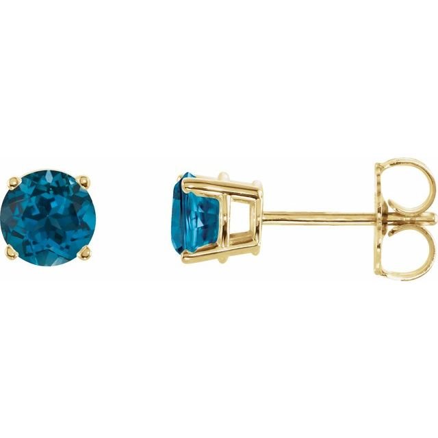 14k Yellow 5 Mm Natural London Blue Topaz Earrings