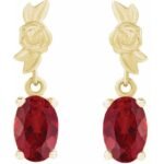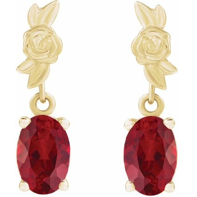 14k Yellow 6×4 Mm Lab-grown Red Ruby Earrings