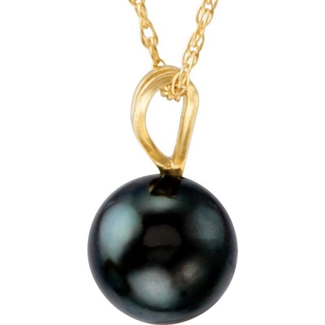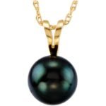 14k Yellow Cultured Black Akoya Pearl 18′ Necklace