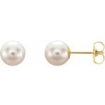 14k Yellow Cultured White Freshwater Pearl Earrings
