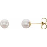 14k Yellow Cultured White Freshwater Pearl Earrings