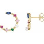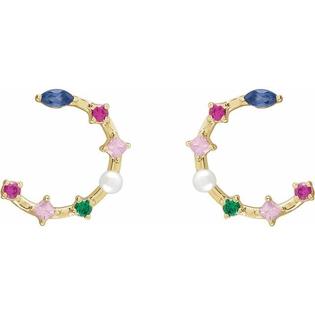 14k Yellow Cultured White Freshwater Pearl & Natural Multi-gemstone Earrings