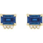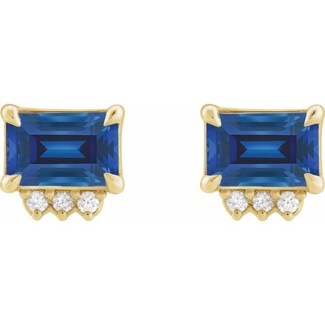 14k Yellow Lab-grown Blue Sapphire & .04 Ctw Natural Diamond Stud Earrings