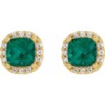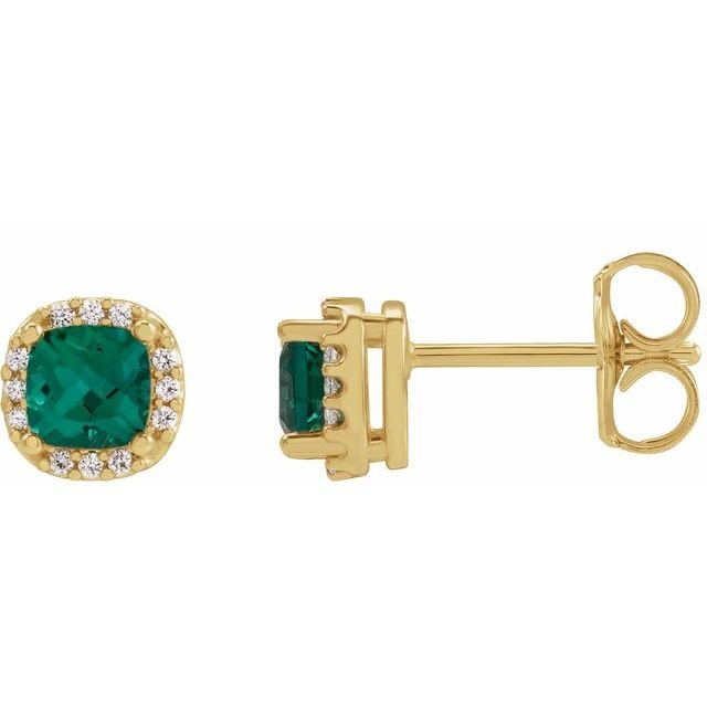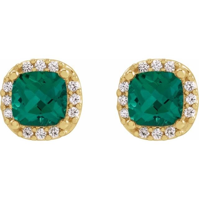 14k Yellow Lab-grown Emerald & .06 Ctw Natural Diamond Halo-style Earrings