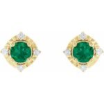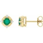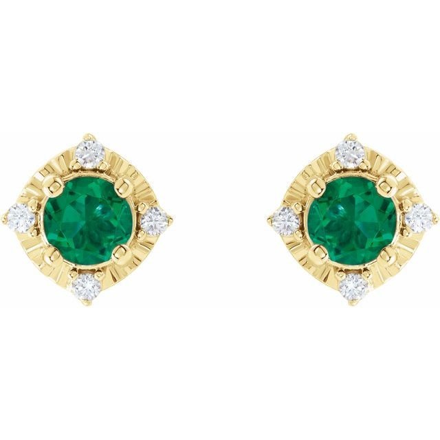 14k Yellow Lab-grown Emerald & .08 Ctw Natural Diamond Halo-style Earrings