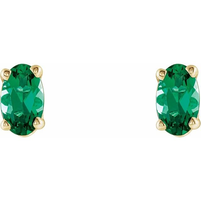 14k Yellow Lab-grown Emerald Earrings