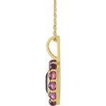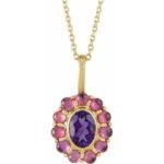 14k Yellow Natural Amethyst & Natural Rhodolite Garnet Halo-style 16-18′ Necklace