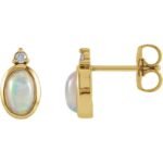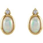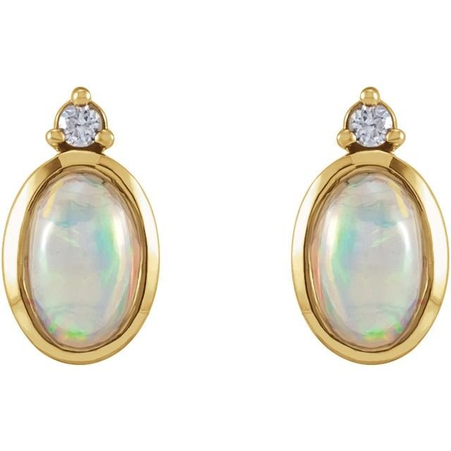 14k Yellow Natural Ethiopian Opal & .06 Ctw Natural Diamond Bezel-set Earrings