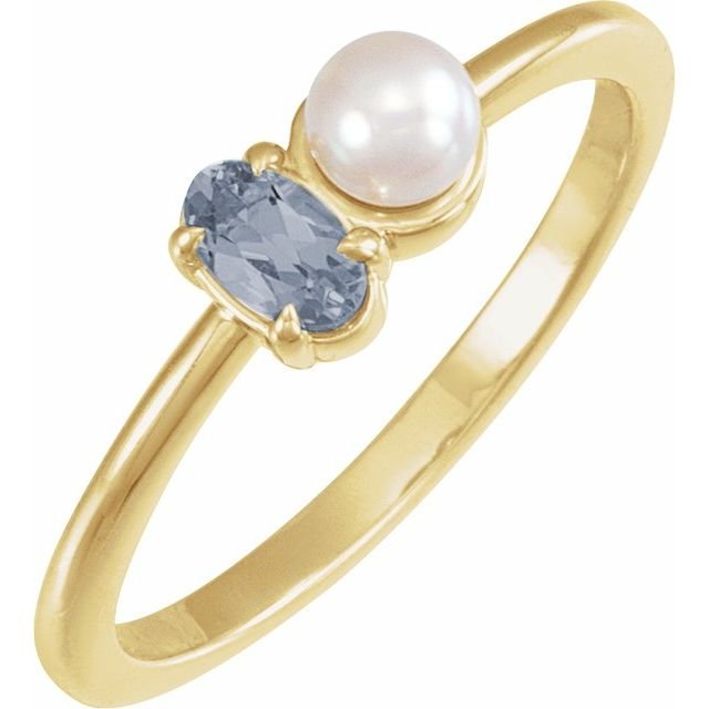 14k Yellow Natural Gray Spinel & Cultured White Akoya Pearl Ring