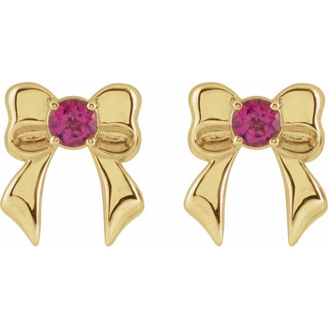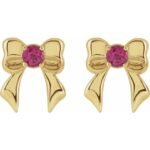 14k Yellow Natural Pink Tourmaline Bow Stud Earrings