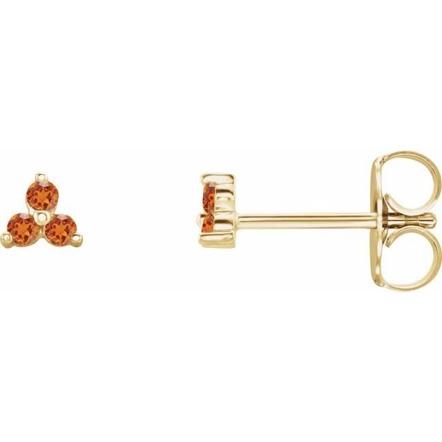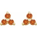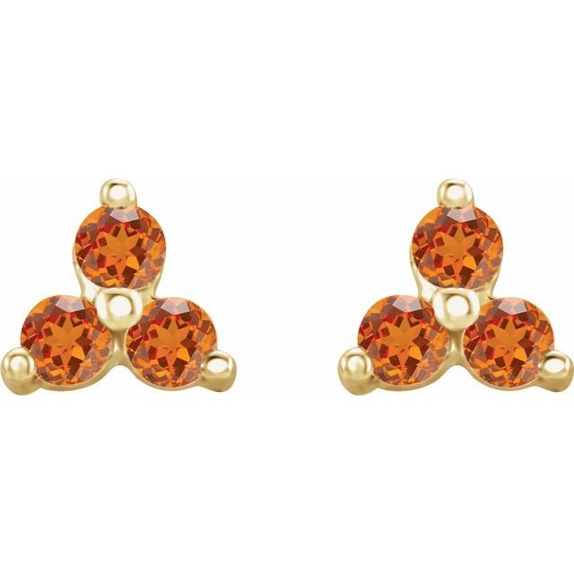 14k Yellow Natural Spessartite Garnet Three Stone Earrings