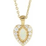 14k Yellow Natural White Opal Cabochon & 1/8 Ctw Natural Diamond 16-18′ Necklace