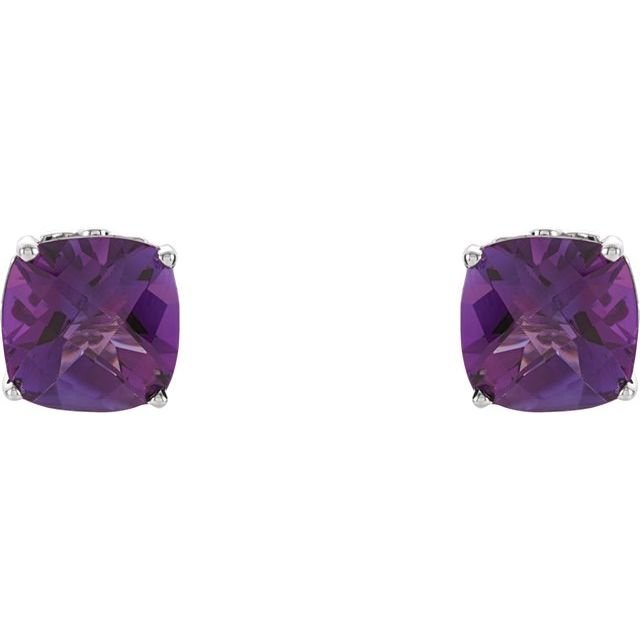 Sterling Silver 5×5 Mm Cushion Natural Amethyst Earrings