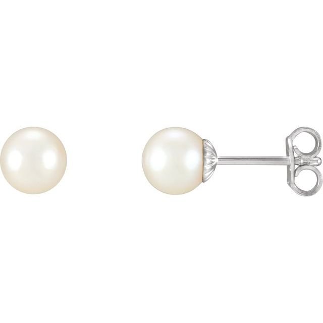 Sterling Silver 7-7.5 Mm Cultured White Freshwater Pearl Earrings