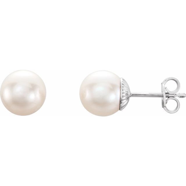 Sterling Silver 8-8.5 Mm Cultured White Freshwater Pearl Earrings