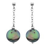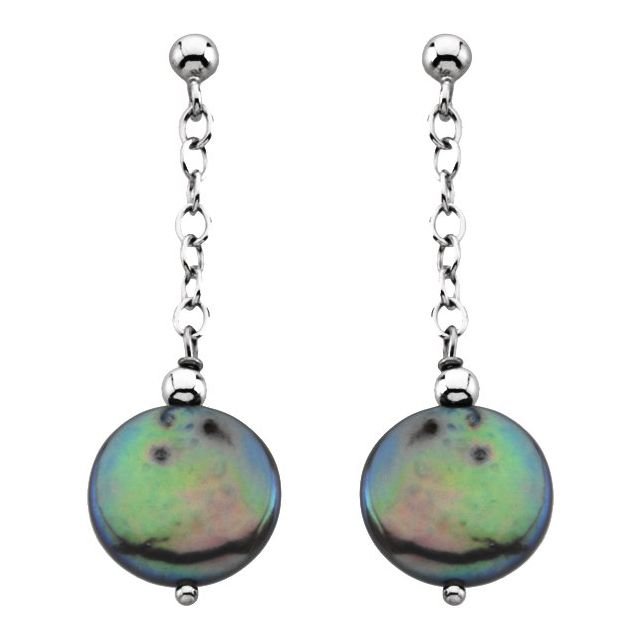 Sterling Silver Cultured Freshwater Black Coin Pearl Earrings