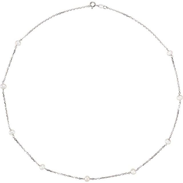 Sterling Silver Cultured White Freshwater Pearl 9-station 18′ Necklace