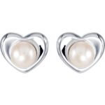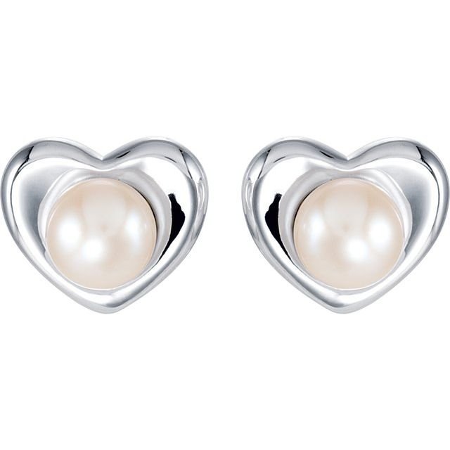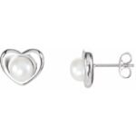 Sterling Silver Cultured White Freshwater Pearl Heart Earrings