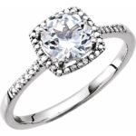 Sterling Silver Lab-grown White Sapphire & .01 Ctw Natural Diamond Ring